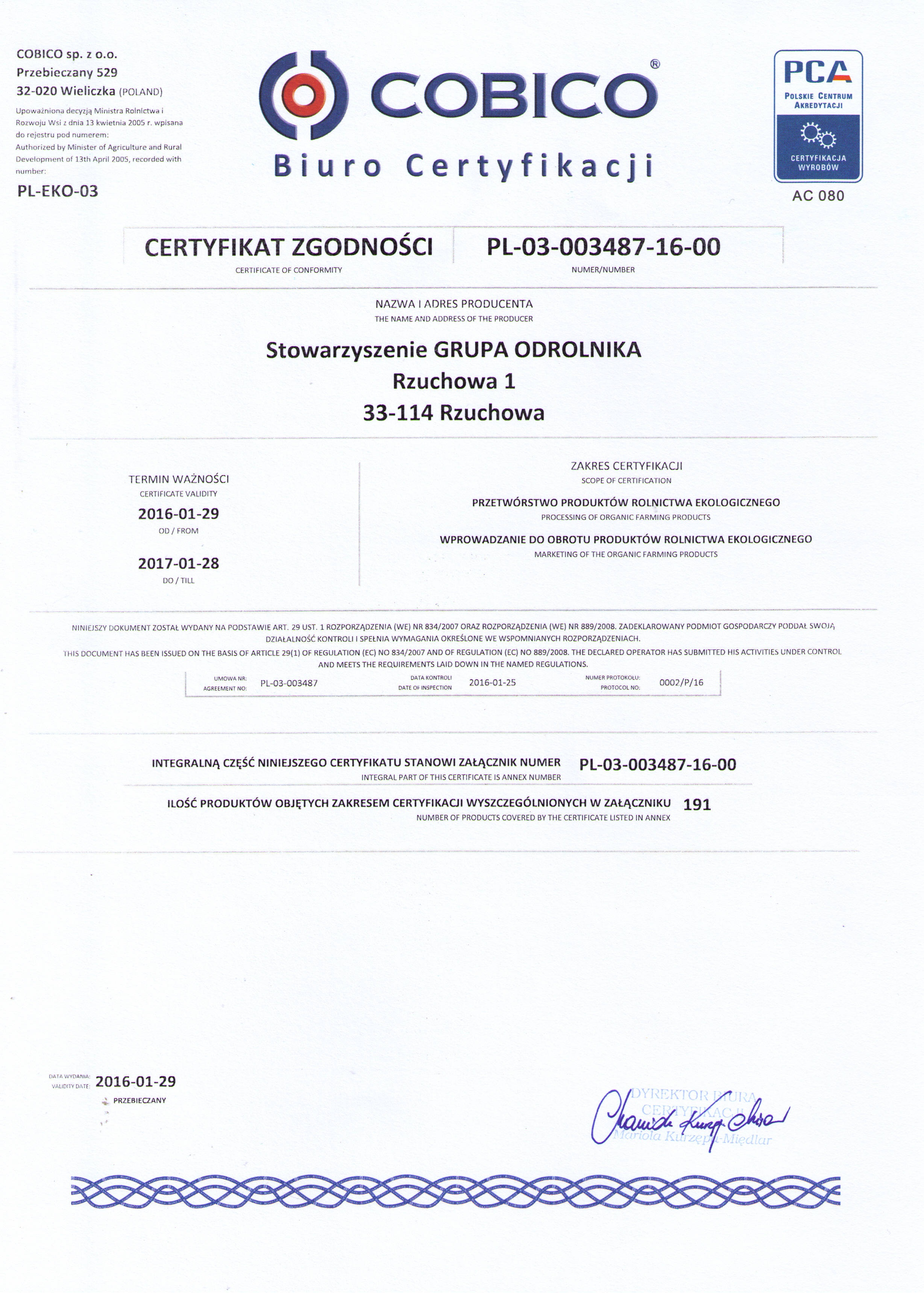 Faktycznie ekologiczną jakość produktów przez nas oferowanych gwarantują poszczególni rolnicy (dostawcy) i ich indywidualne certyfikaty oraz certyfikat naszego sklepu.